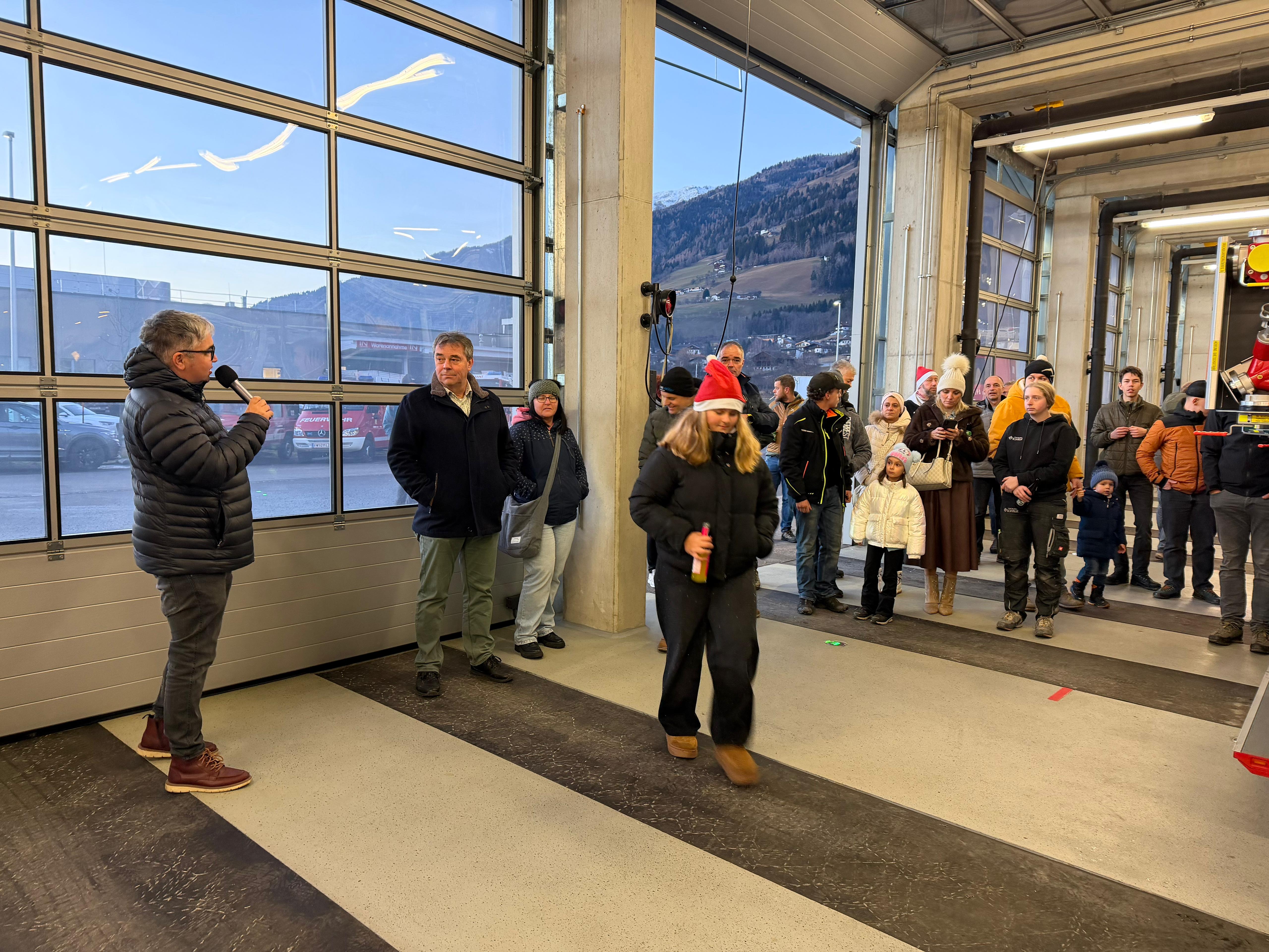 Im Rahmen der Ankunft richtete Kdt. Christian Brugger einige Worte an die anwesenden Kameradinnen und Kameraden sowie an die Ehrengäste. In seiner Ansprache bedankte er sich bei allen Beteiligten, die zur Umsetzung dieses wichtigen Projektes beigetragen haben – insbesondere bei der Gemeinde, den Förderstellen und der Mannschaft.