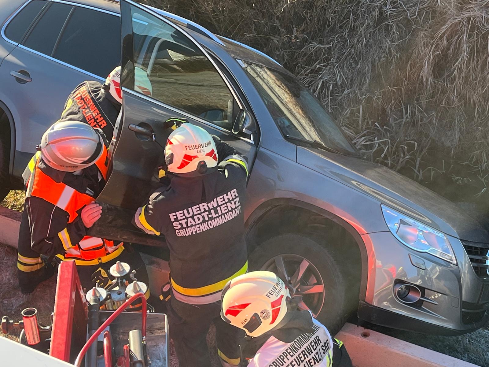 Beim Eintreffen der Einsatzkräfte befand sich eine Person noch im Fahrzeug, diese blieb jedoch unverletzt. Die Unfallstelle wurde umgehend abgesichert und das Fahrzeug gegen weiteres Abrutschen gesichert.