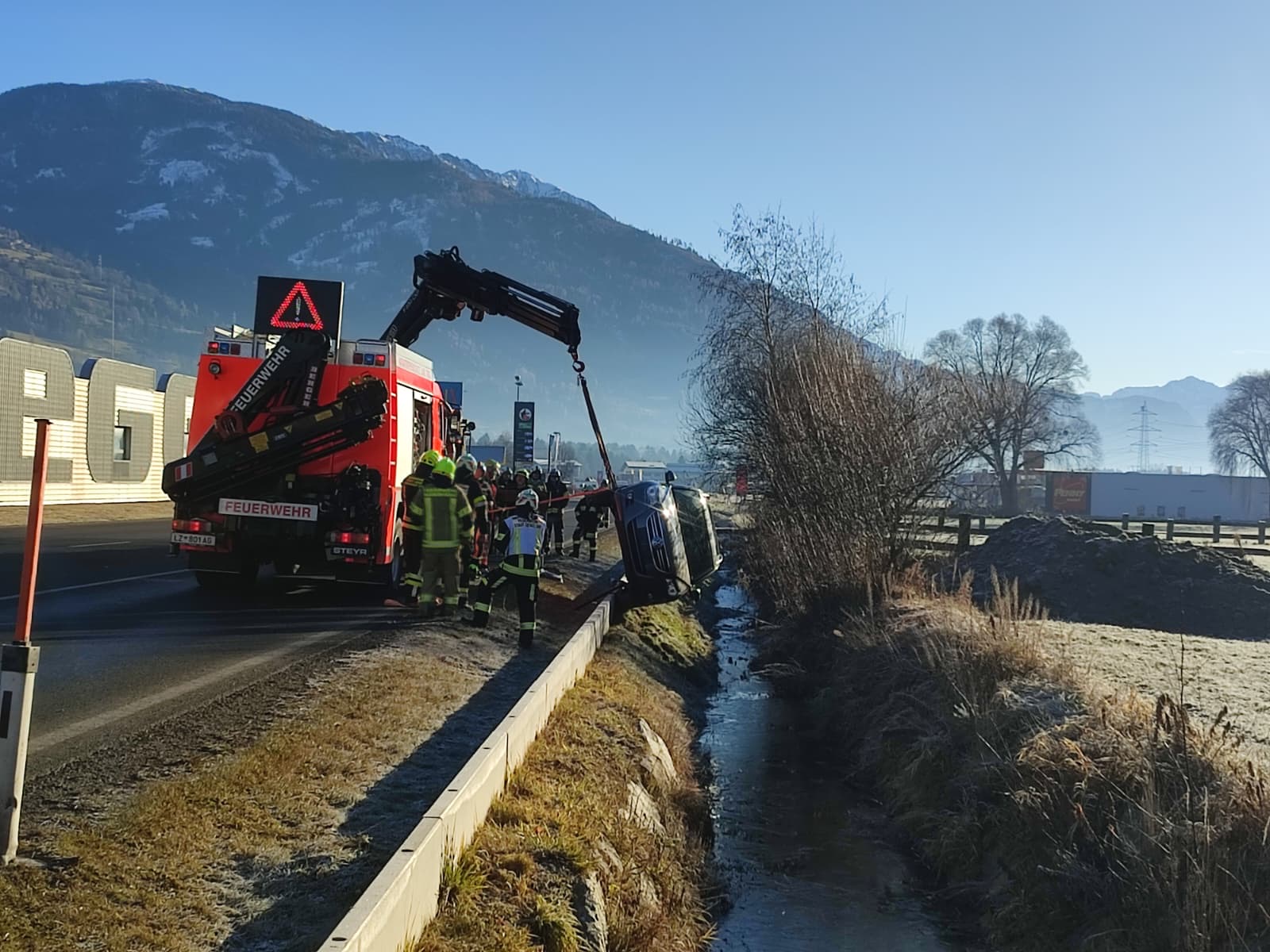 Am 14.12.2025 wurden die Feuerwehr Nußdorf-Debant sowie die Feuerwehr Lienz um 09:03 Uhr zu einer Fahrzeugbergung auf der B100, Fahrtrichtung Kärnten, alarmiert.