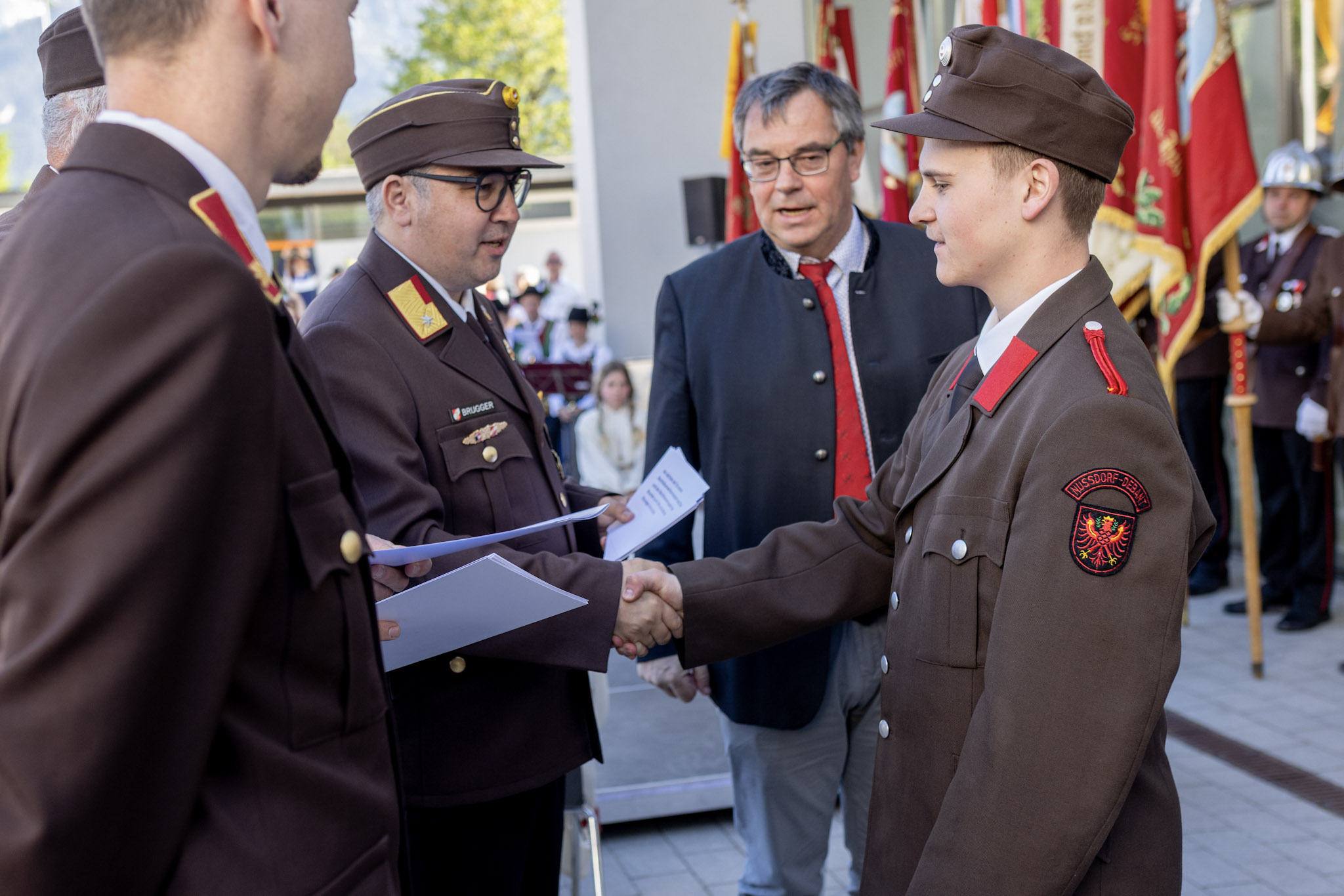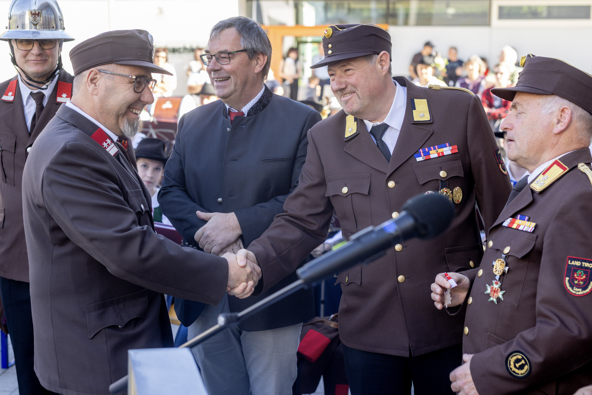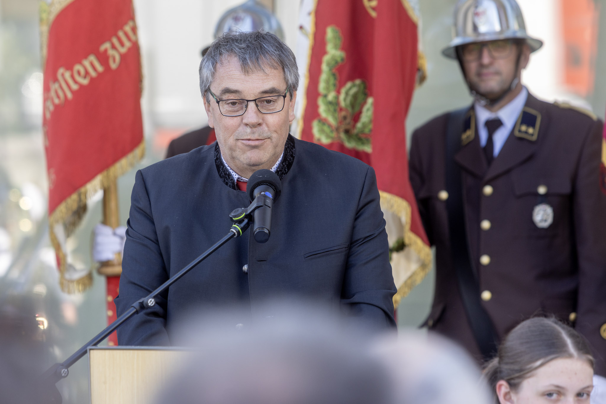 Im Anschluss an den Gottesdienst begrüßte Bgm. Ing. Andreas Pfurner unter anderem Bezirkshauptfrau Dr.in Bettina Heinricher, LA Martin Mayerl, LA Bgm. DI Elisabeth Blanik, Bezirksfeuerwehrinspektor Franz Brunner, Bezirkskassier Bgm. Markus Tönig, Bgm. Bernhard Webhofer (Tiroler Versicherung) sowie weitere Ehrengäste. In seiner Ansprache betonte der Bürgermeister, dass es der Gemeindeführung stets ein großes Anliegen sei, die Feuerwehr mit modernster und bestmöglicher Ausrüstung auszustatten und unterstrich die große Bedeutung der Feuerwehr für die Gemeinde.