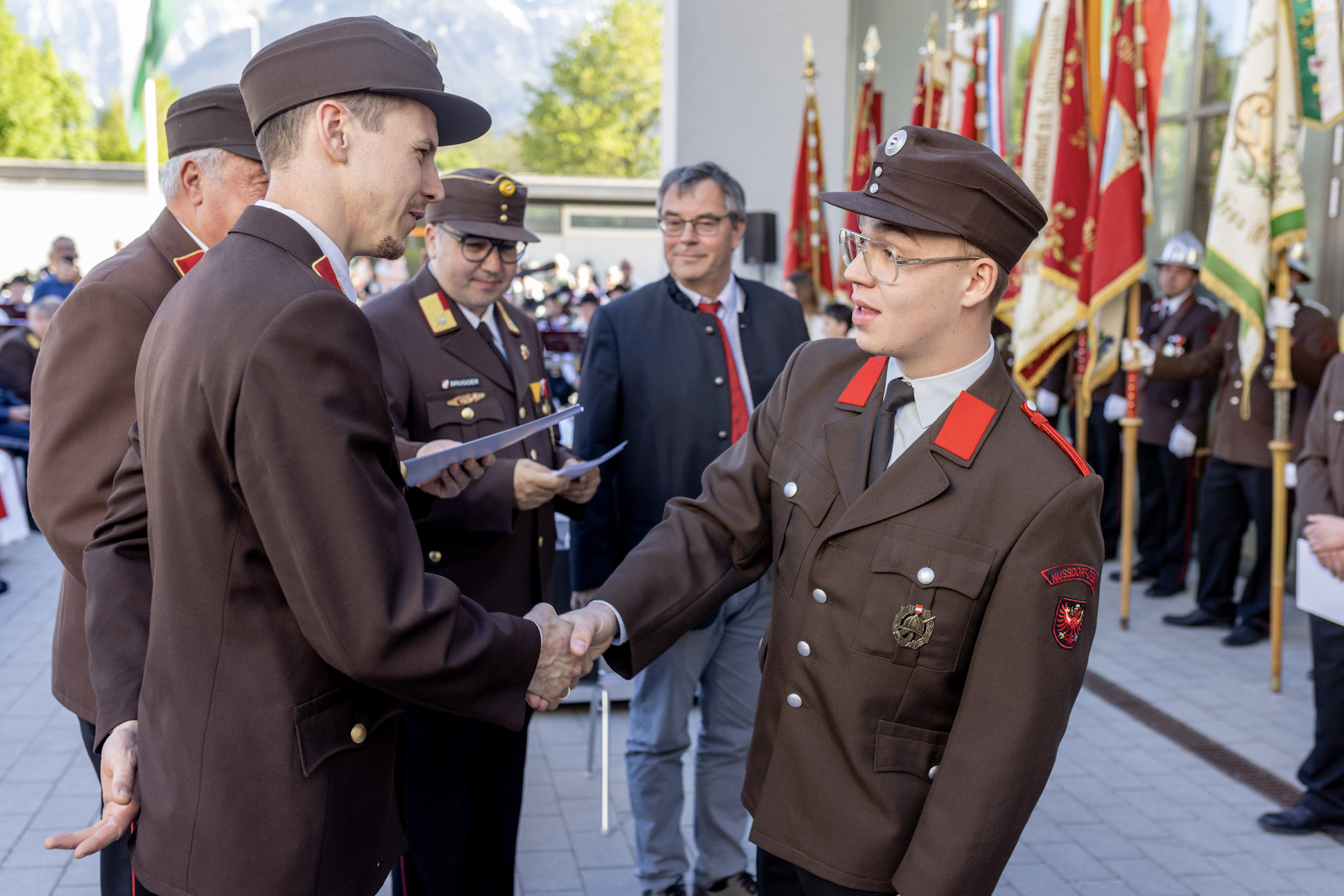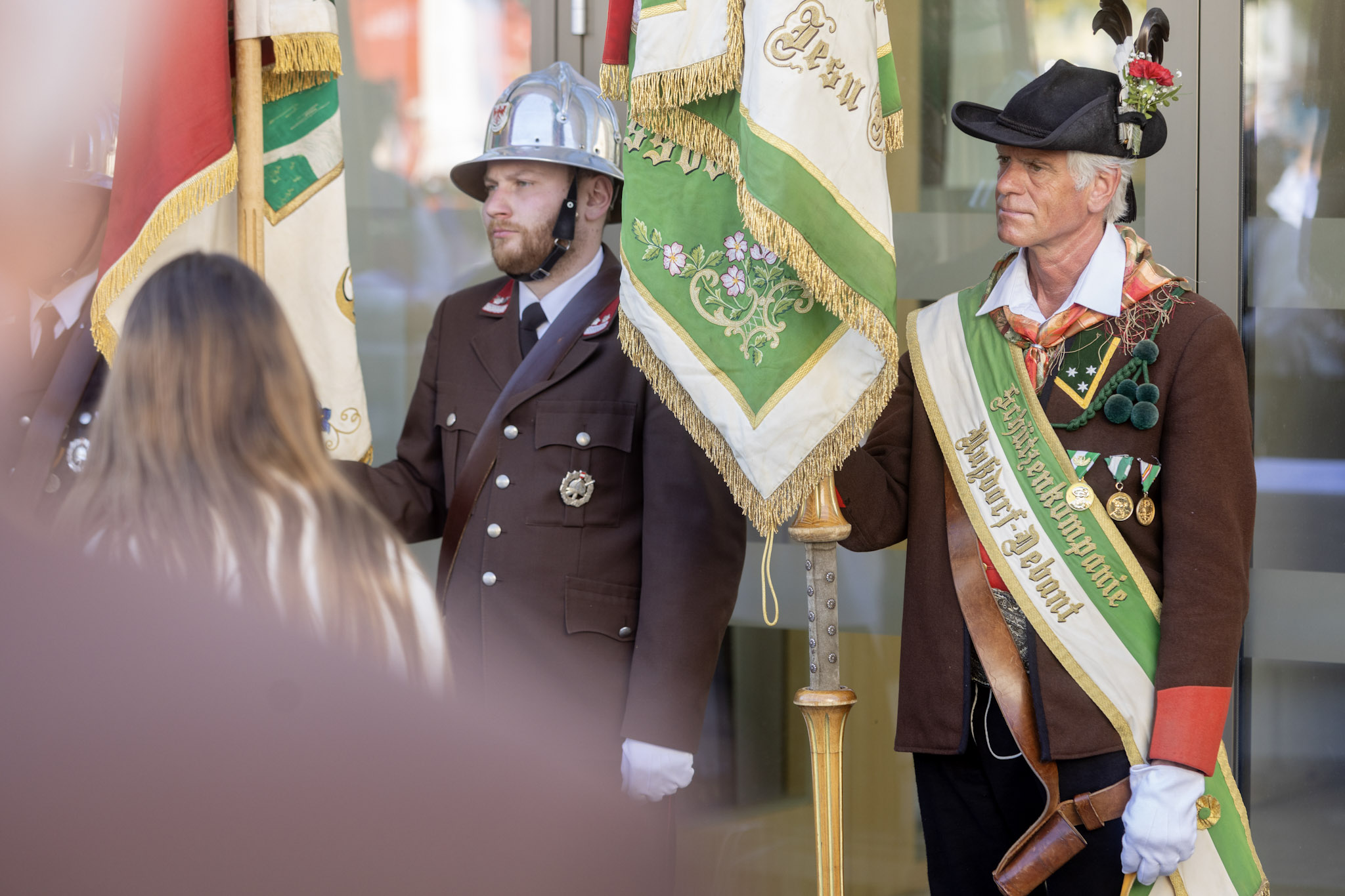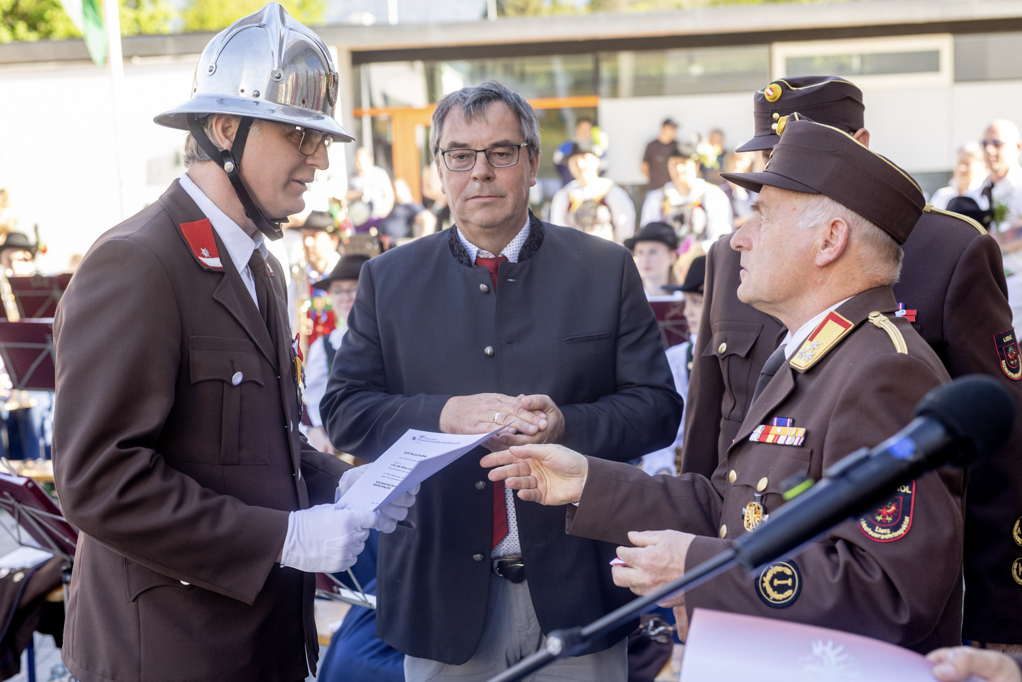 Im Anschluss an den Gottesdienst begrüßte Bgm. Ing. Andreas Pfurner unter anderem Bezirkshauptfrau Dr.in Bettina Heinricher, LA Martin Mayerl, LA Bgm. DI Elisabeth Blanik, Bezirksfeuerwehrinspektor Franz Brunner, Bezirkskassier Bgm. Markus Tönig, Bgm. Bernhard Webhofer (Tiroler Versicherung) sowie weitere Ehrengäste. In seiner Ansprache betonte der Bürgermeister, dass es der Gemeindeführung stets ein großes Anliegen sei, die Feuerwehr mit modernster und bestmöglicher Ausrüstung auszustatten und unterstrich die große Bedeutung der Feuerwehr für die Gemeinde.