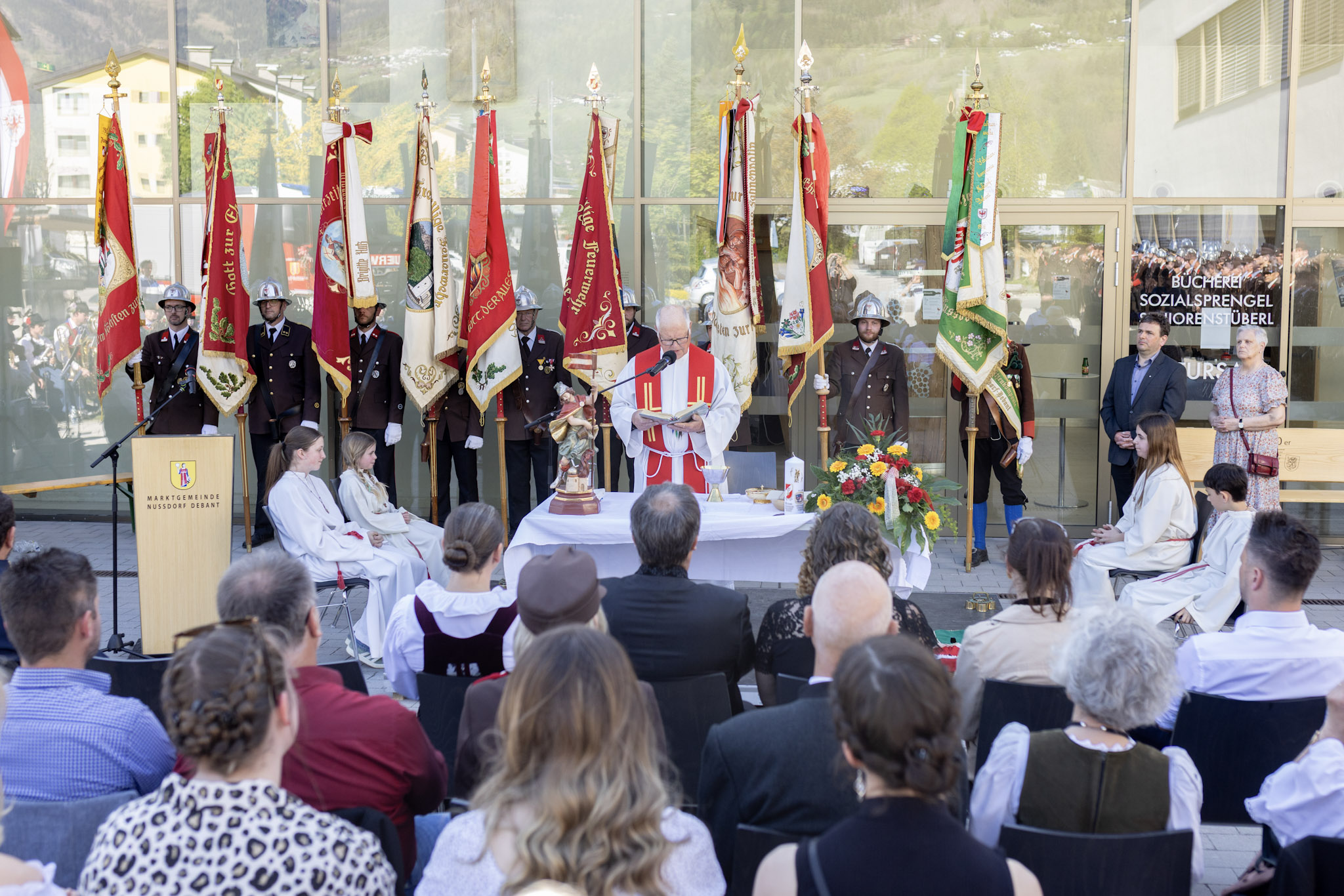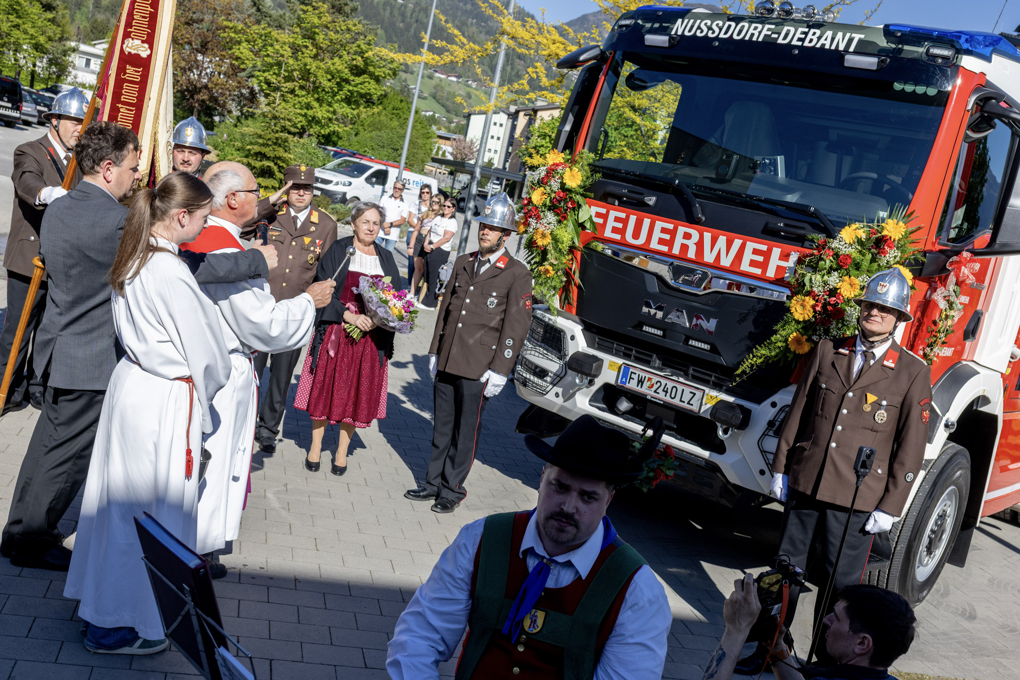 Gemeinsam mit den Feuerwehrkameradinnen und -kameraden aus Nußdorf-Debant, den Feuerwehren des Abschnittes, einer Abordnung der Feuerwehr Grafendorf, der Marktmusikkapelle Nußdorf-Debant, einer Abordnung der Schützenkompanie Nußdorf-Debant, der Ortsbevölkerung sowie zahlreichen Ehrengästen zelebrierte Pfarrer Mag. Josef Mair den Festgottesdienst mit anschließender Fahrzeugsegnung. Als Fahrzeugpatin fungierte Reinhilde Brugger.